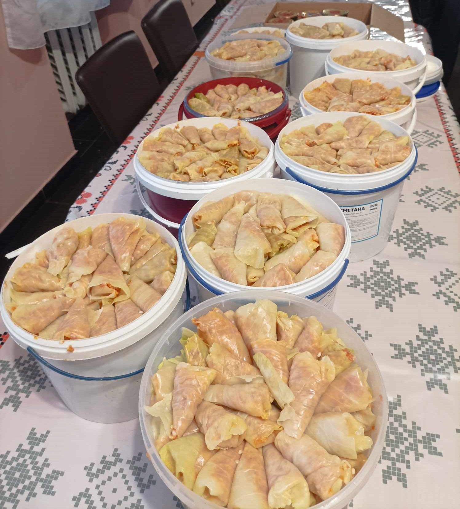 Наші колеги захищають нашу Україну від ворожої навали, деякі з них вже майже два роки стоять в строю бойових підрозділів. Тож, наші ґаздині взялися до роботи. Профспілка закупила продукти: капусту, м’ясний фарш, цибулю, домашнє сало та спеції.
